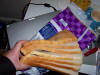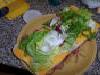 El Boca is now complete - see below for documented evidence. There were a few slight changes to the original plan as it was felt that tuna would ruin the mix. The bottom layer is Beef, followed by Bacon, then Cheese Salad, then Breaded Chicken, followed by Sausage and finally Ham. The first slice was consumed by myself just now (18:00, 4th March, 2004 - Lincoln, England) and I now require a lay down. Layer 5
