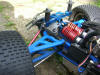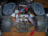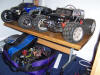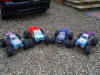 UPDATE - 9th January 2006 Since the last update I have added red springs, a Hitec 625mg servo on the throttle/brake, Hardcore Racing Titanium engine plate and a Robinson Racing hardened steel 48 tooth spur gear and 16t clutch bell combo. The red springs are softer than the purple I was running before, lowering the truck and improving the handling. The uprated servo on the throttle and brake linkage is faster and more powerful than the stock servo, improving throttle response and braking power, the HCR engine plate was just so I had the whole set, and the steel spur and clutch bell combo were because I never wanted to have to change another spur gear again! The final picture here shows my Savage, along with Jonny's new Limited Edition 3 speed Savage and my TS4n road car on charge. Also, I sold the original buggy now - I was sad to see it go, after it got me into the hobby, but the cash was much welcomed!