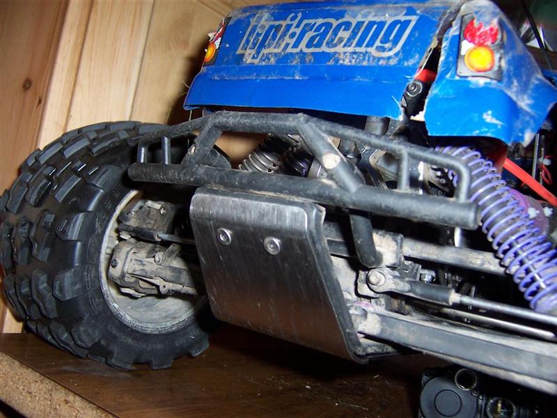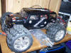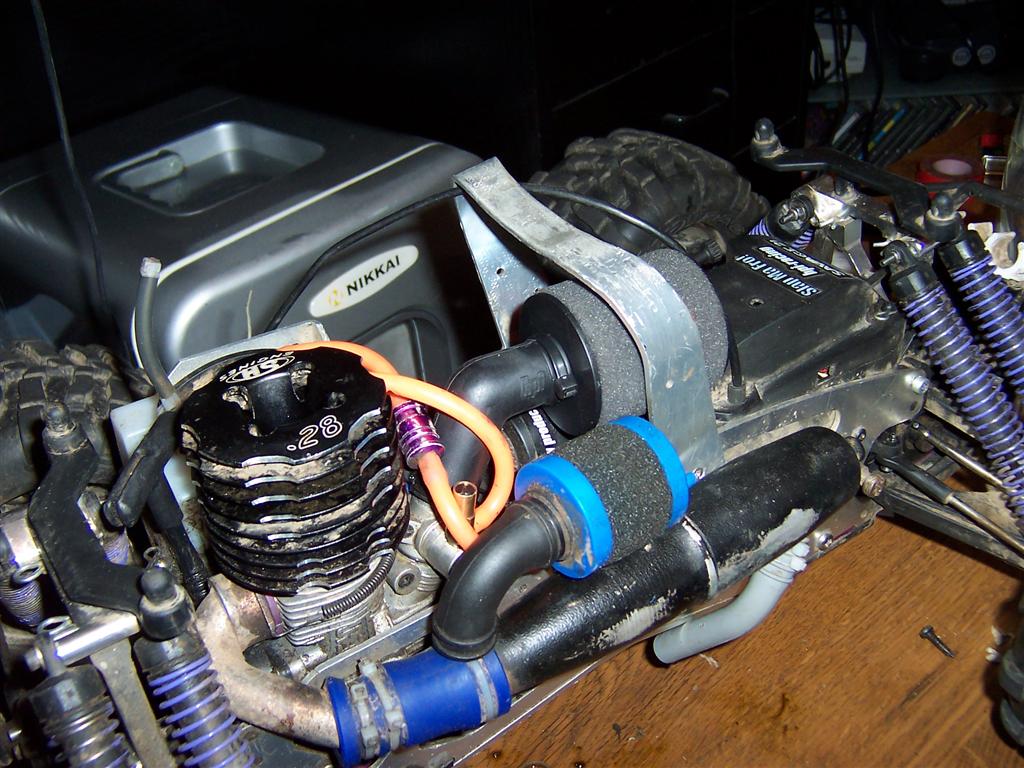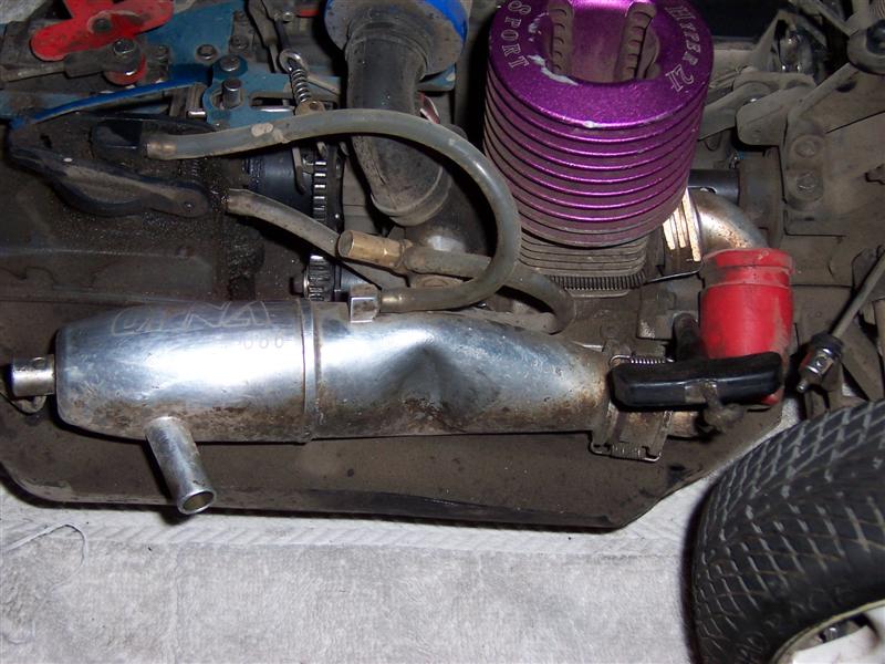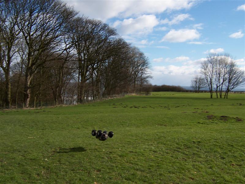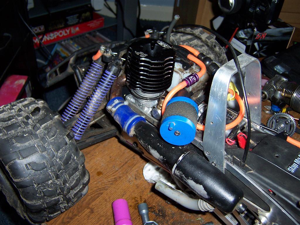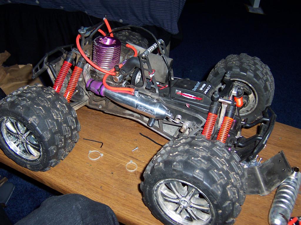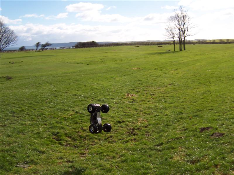 UPDATE - 17th March 2005 Got and fitted a new engine and air filter to the Savage (well, the filter came about 3 weeks later), also, managed to bend the roll bar, then attempt to bend it back, and then collapse the whole rear end :) Behold the awesomeness of my slippers as well ;) As this new engine had a considerable power advantage over the old Hyper (3.6bhp as opposed to 2.5bhp, and much more low down torque) I had to make a few other changes, such as a larger clutchbell, to lessen wheelies, and give more top end speed. Also, its where the other previously done mod's came in useful, such as the heavy duty driveshafts and uprated 4 spider differentials.