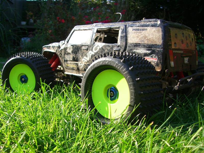 UPDATE - 24th March 2005 Got some new tyres and wheels fitted onto the Savage. The tyres are the standard ones that come with the MGT/MTA4 and the wheels are Hot Bodies Dagger's.