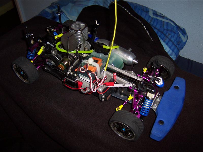 UPDATE - 28th October 2004 Well, a couple of weeks ago, I got another RC car :) This time, its a road car. The buggy's aren't that good on the concrete, flipping, and breaking things, so it was decided I too (like Dave, who already had one) needed a road car for winter, when everywhere was too wet to buggy! And here it is! It was a true Ebay bargain! £245 new ready to run. This was £130, and has £150 of upgrade parts and a load of spares with it, and had only run for about 2 tanks of fuel!