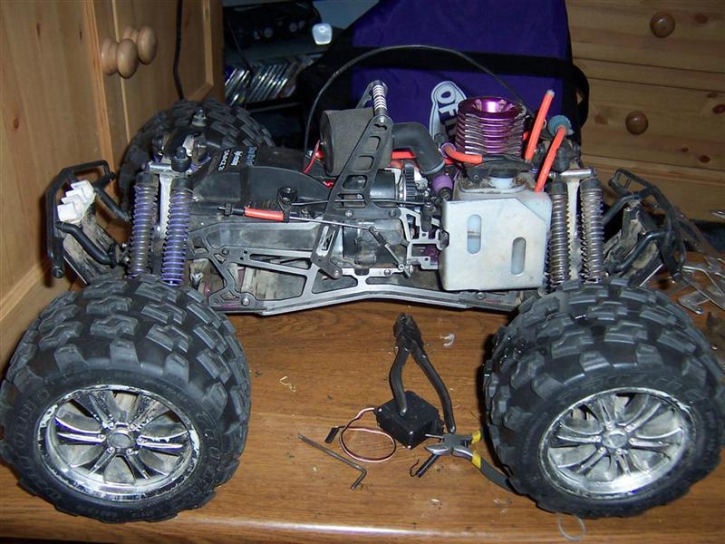 UPDATE - 29th August 2006 Well, as the front page says I'm keeping the Savage now as a project to keep me entertained, and it already has a new engine! New clutch is on the way, as the stock one is struggling with the grunt of the new motor. Heres a couple of little pics of it freshly installed, running Robinson Racing 18t hardened clutch bell. The new wheels and tyres are stock T-Maxx wheels running ProLine Mulcher tyres. UPDATE - 25th April 2006 Well, I should probably be revising for my one and only exam this year, and my final one at Uni, but I just thought I'd post an update to announce that due to changing circumstances, namely me moving abroad for a bit, I'll be selling up the entire collection, so watch eBay in the coming months... It'll be a sad day no doubt, but times change, bring on the next hobby! Thinking something along the lines of a motorbike...